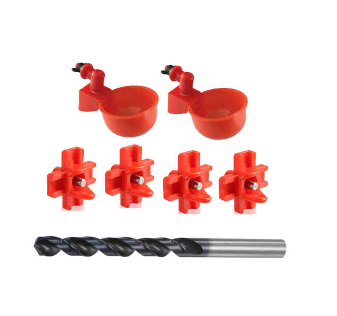 This combination waterer kit gives your chickens the best of both worlds: extremely easy water access, and the ability to use it in the winter (with a heater). Comes with two autofill cups, four nipples, and one drill bit that will install both. The nipples are manufactured by Columbus Aqua in Denmark. They are guaranteed not to leak. All you need is a bucket or barrel.