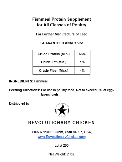 See this video [6:08] to see the how I use fishmeal as a part of my own DIY chicken feed.