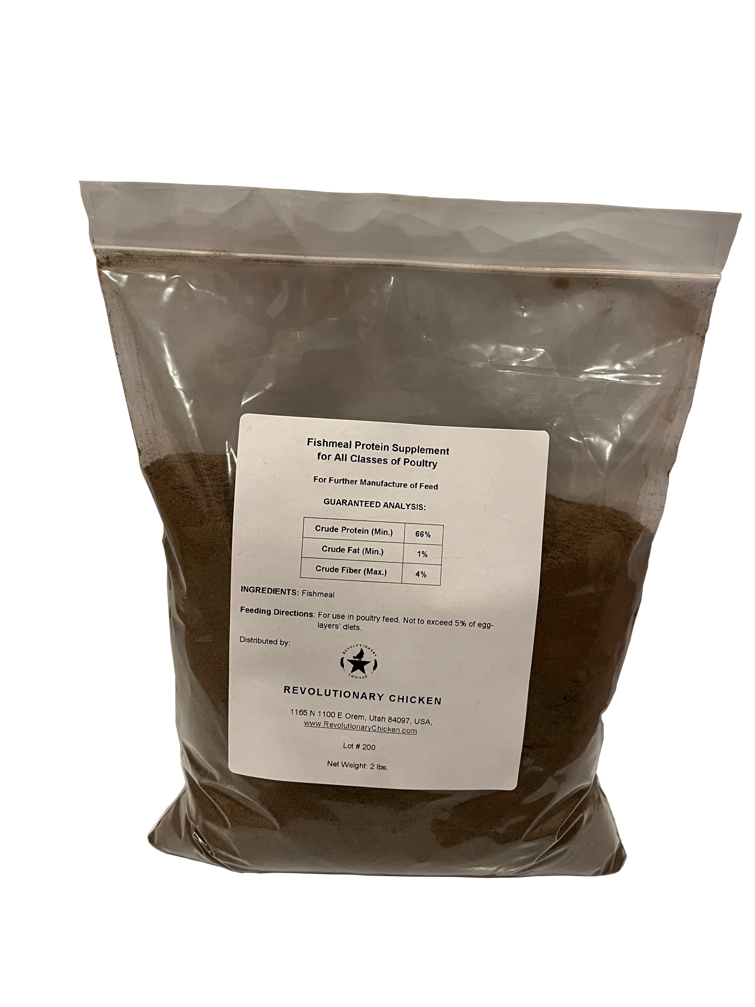 Everyone knows that protein is vital to a laying hen’s diet. At minimum 66% protein, fishmeal from Revolutionary Chicken is an excellent source of protein for poultry. It has high levels of essential amino acids such as methionine and lysine, and it also has a good balance of unsaturated fatty acids, certain minerals (available phosphorus), and vitamins (A, D, and B-complex).* Add it to your hens’ feed to boost protein, but don’t overdo it. As long as their diets are less than 5% from fishmeal, the taste of their eggs won’t be affected.