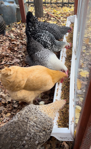 See this video for information on how to feed your chickens sprouts and/or fermented feed using this feeder, and watch the last two minutes to see the chickens eating from it.